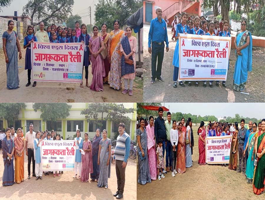 राजनांदगांव- एड्स के प्रति लोगों में जागरूकता फैलाने के लिए हर साल दुनिया भर में 01 दिसंबर यानी आज ही के दिन विश्व एड्स दिवस मनाया जाता है. इसी कड़ी में आज विश्व एड्स दिवस के अवसर पर छ.ग. राज्य एड्स नियंत्रण समिति, रायपुर के सहयोग से जन कल्याण सामाजिक संस्थान, राजनांदगांव द्वारा जिलें के विभिन्न स्थानों पर एच.आई.वी./ एड्स जागरूकता कार्यक्रमों का आयोजन किया गया. संस्था द्वारा जिले के 14 ग्रामों, ग्राम-लालपुर, जालबांधा, पदमावतीपुर, चकनार, कुमर्दा, मनेरी, रेगांकठेरा, बेलगांव, एल.बी.नगर, मोहारा, धनगांव, भानपुरी, धामनसरा एवं तोरनकट्टा में संगोष्ठी, रैली के माध्यम से एच.आई.वी./ एड्स संक्रमण के कारण एवं बचाव के बारे मे विस्तार पूवर्क जानकारी दी गई. जागरूकता कार्यक्रम विभिन्न आंगनबाड़ी, स्कूलों, काॅलेजों व ग्राम पंचायतों में किया गया, जिसमें मुख्य रूप से स्कूली छात्र-छात्राएं, स्थानीय समुदाय, युवा वर्ग, महिलाएं, मितानिन, पंचायत प्रतिनिधि, स्कूल प्रध्यापक, आगनबाड़ी कार्यकर्ता शामिल हुए.