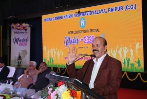 समारोह की अध्यक्षता करते हुए इंदिरा गांधी कृषि विश्वविद्यालय के कुलपति डॉ. गिरीश चंदेल ने कहा कि इंदिरा गांधी कृषि विश्वविद्यालय में अध्ययन करने वाले विद्यार्थियों की अंतरनिहीत सांस्कृतिक प्रतिभाओं के विकास के लिए प्रति वर्ष विश्वविद्यालय स्तर पर मड़ई युवा महोत्सव का आयोजन किया जाता है. पिछले 28 वर्षां से यह आयोजन किया जा रहा है. उन्होंने अपने विद्यार्थी जीवन को याद करते हुए कहा कि वे उन्होंने विद्यार्थी के रूप में वर्ष 1990 में विश्व भारतीय विश्वविद्यालय शांति निकेतन पश्चिम बंगाल में कृषि विश्वविद्यालय का प्रतिनिधित्व किया था. वह एक अविस्मरणीय यादें हैं. डॉ. चंदेल ने कहा कि कृषि विश्वविद्यालय के विद्यार्थियों ने राष्ट्रीय स्तर पर आयोजित एग्री युनिफेस्ट में अनेकों बार स्वर्ण, रजत एवं कांस्य पदक प्राप्त किये हैं उन्होंने आशा व्यक्त कि की मड़ई 2023 के विजेता प्रतिभागी राष्ट्रीय स्तर पर विश्वविद्यालय तथा छत्तीसगढ़ का मान बढ़ाएंगे.