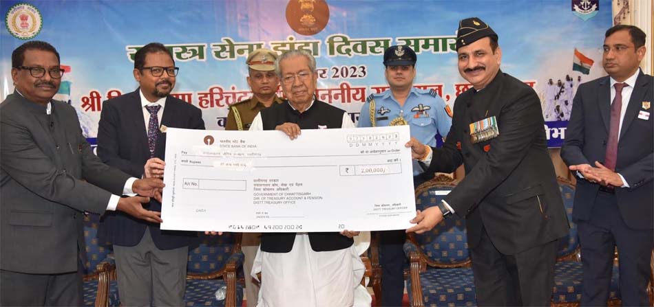रायपुर : राज्यपाल विश्वभूषण हरिचंदन ने सशस्त्र सेना झण्डा दिवस के अवसर पर राजभवन में आयोजित समारोह में कहा कि हमारे वीर सशस्त्र बलों ने निस्वार्थ और उल्लेखनीय बहादुरी के साथ हमारे महान राष्ट्र की सेवा की है. झण्डा दिवस उनके और उनके परिवार के प्रति कृतज्ञता व्यक्त करने का पर्व है.