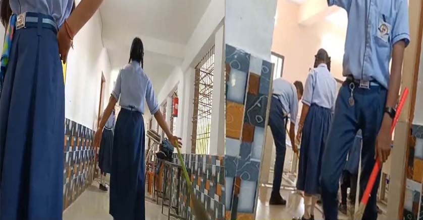 बिलासपुर : बिलासपुर जिले के सरकंडा मुक्तिधाम के सामने स्थित पंडित राम दुलारे दुबे स्वामी आत्मानंद स्कूल में बच्चों से झाड़ू-पोछा लगवाने का वीडियो वायरल हुआ है. वीडियो में स्कूली बच्चे पढ़ाई-लिखाई की बजाय साफ सफाई करते दिख रहे हैं. वहीं शिक्षा विभाग के अधिकारियों ने विद्यार्थियों से साफ सफाई कराने को गलत बताते हुए मामले की जांच कर कार्रवाई की बात कही है.