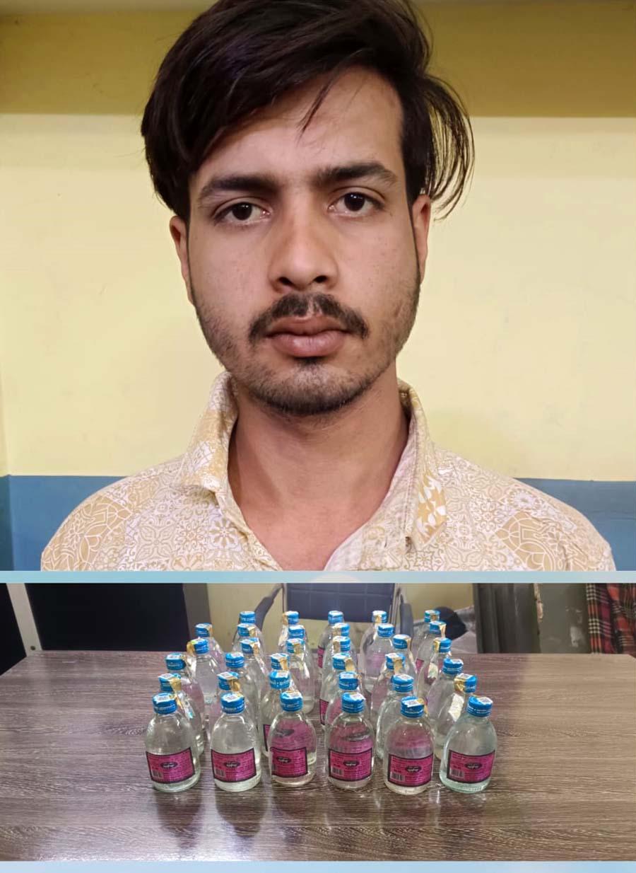 थाना उरला क्षेत्रांतर्गत बेन्द्री रोड नऊवा तालाब के पास एक व्यक्ति एक सफेद रंग का प्लास्टिक की बोरी में शराब बिक्री करने के लिये ग्राहक की तलाश मंे था. मिली सूचना के आधार पर उरला पुलिस की टीम ने अपराधी का पहचान कर उसे गिरफ्तार कर लिया. मौके पर शराब खरीदने वाले व्यक्ति पुलिस को देखते ही भाग गये। पुलिस की टीम के द्वारा पूछताछ में व्यक्ति ने अपना नाम सत्यम शुक्ला पिता सकदीन शुक्ला उम्र 23 साल साकिन ग्राम पाली थाना बैकुन्ठपुर जिला रीवा (म.प्र.) तथा वर्तमान पता कुकु मामा ढाबा सिक्स लेन रोड उरला रायपुर (छ.ग.) का होना बताया. टीम के सदस्यों द्वारा उसके पास रखें प्लास्टिक के बोरी में 35 पौवा देशी प्लेन शराब (कुल 6.300 बल्क लीटर) रखा होना पाया गया. जिसकी कीमत लगभग 2800/- रूपये बताया जा रहा है. आरोपी के विरूद्ध थाना उरला में अपराध क्रमांक 26/23 धारा 34(2) आबकारी एक्ट का अपराध पंजीबद्ध कर कार्यवाही किया गया. पुलिस ने आरोपी सत्यम को पुराना आदतन बदमाश बताया है तथा जिसके विरूद्ध थाने में कई मामले दर्ज है.