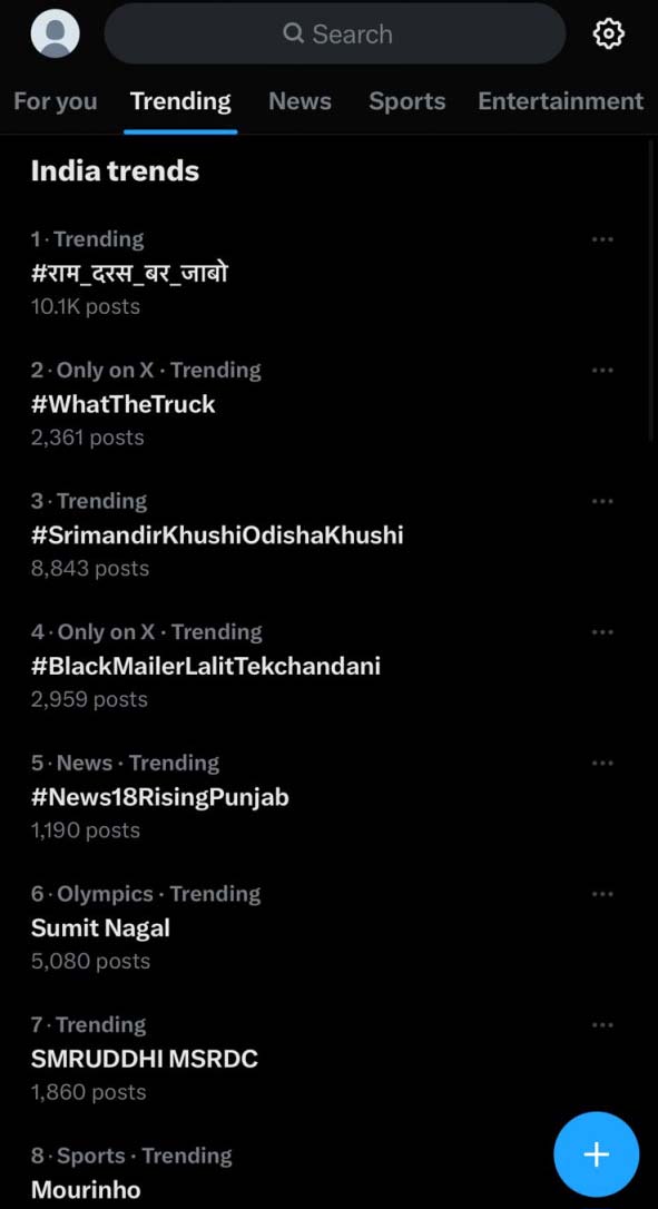 रायपुर- श्री राम जन्मभूमि अयोध्या धाम में 22 जनवरी को होने जा रहे श्री रामलला प्राण-प्रतिष्ठा समारोह को लेकर श्री राम के ननिहाल छत्तीसगढ़ में गजब का उत्साह देखने काे मिल रहा है. मंगलवार को सोशल मीडिया प्लेटफार्म X पर #राम_दरस_बर_जाबो नंबर वन ट्रेंड करता रहा. छत्तीसगढ़ की जनभावनाओं को अभिव्यक्त करते इस हैश टैग के साथ सोशल मीडिया यूजर्स अपने विचार साझा करते रहे, जिसमें छत्तीसगढ़ सरकार द्वारा शुरू की गई श्री “श्री रामलला दर्शन योजना” की भी खूब चर्चा रही. साथ ही मुख्यमंत्री विष्णुदेव साय का वीडियो संदेश भी साझा किए जाते रहे, जो उन्होंने श्री रामलला प्राण-प्रतिष्ठा समारोह के निमित्त प्रदेशवासियों के नाम जारी किए हैं. परिणाम स्वरूप दोपहर 1 बजे से शाम 5 बजे तक x पर #राम_दरस_बर_जाबो जमकर ट्रेंड करता रहा.