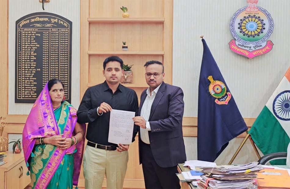 दुर्ग : वरिष्ठ पुलिस अधीक्षक दुर्ग राम गोपाल गर्ग के द्वारा पुलिस अधीक्षक कार्यालय में उमेश शुक्ला को पुलिस विभाग में नौकरी का नियुक्ति आदेश प्रदान किया. इनके पिता स्व. श्रवण कुमार शुक्ला दुर्ग जिले में प्रधान आरक्षक के पद पर पदस्थ थे, नौकरी के दौरान आकस्मिक मृत्यु होने पर वरिष्ठ पुलिस अधीक्षक दुर्ग राम गोपाल गर्ग के द्वारा अनुकम्पा नियुक्त के प्रकरण को गंभीरता से लेते हुए अनुकम्पा नियुक्ति संबंधी सभी कार्रवाई जल्द पूरी करते हुए अनुकम्पा नियुक्ति दिए जाने के निर्देश दिए थे, बुधवार को सभी प्रक्रिया पूर्ण होने पर उमेश को पुलिस विभाग में आरक्षक के पद पर पदस्थ कर नियुक्ति आदेश जारी किया गया. इस अवसर पर उमेश की माता भी उपस्थित रही.