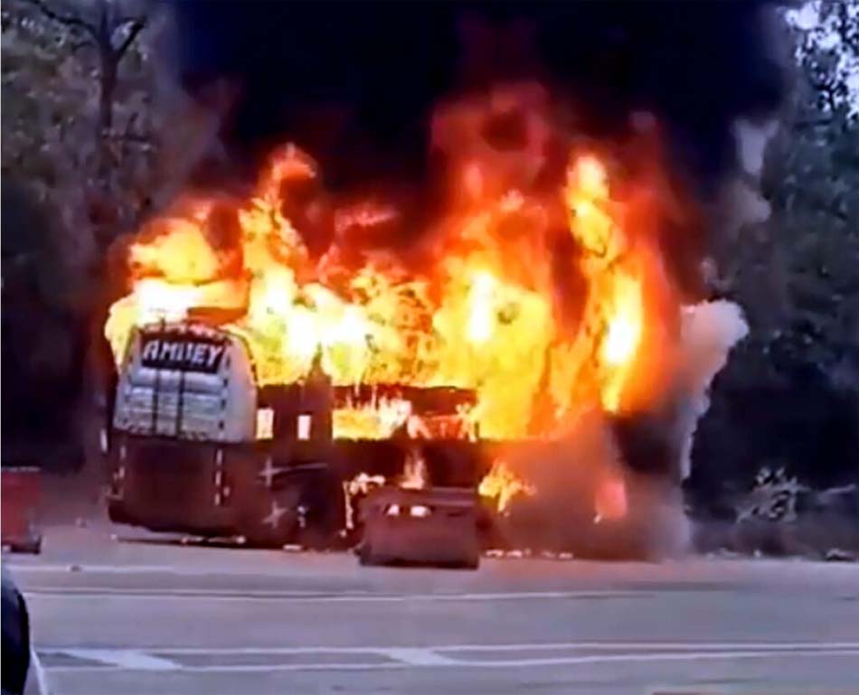 बालोद : छत्तीसगढ़ के बालोद जिले में यात्रियों से भरी बस नारायणपुर से रायपुर जा रही थी. तभी राजाराव पठार के पास टोल प्लाजा के ठीक सामने बस में आग लगी. बस के ब्रेक-शू चिपकने की वजह से यह आगजनी की घटना हुई है. बस में सवार सभी यात्री सुरक्षित बताए जा रहे हैं.