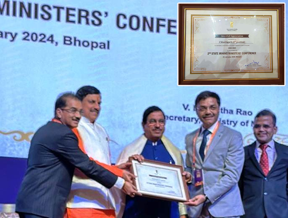छत्तीसगढ़ को गैर कोयला मुख्य खनिज ब्लॉकों की नीलामी के लिए द्वितीय बेस्ट परफॉर्मेंस अवार्ड