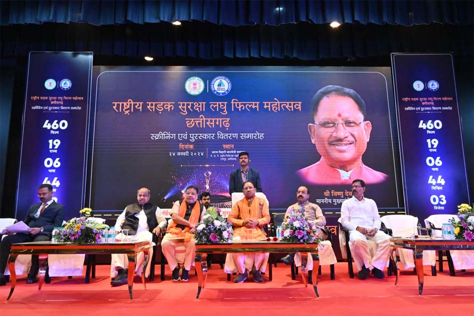 रायपुर : मुख्यमंत्री श्री विष्णु देव साय राजधानी रायपुर में आयोजित राष्ट्रीय सड़क सुरक्षा लघु फिल्म महोत्सव स्थल में पहुंचे. राजधानी में दो दिवसीय लघु फिल्म महोत्सव का आयोजन रायपुर के मेडिकल कॉलेज स्थित अटल बिहारी वाजपेयी ऑडिटोरियम में किया गया है. महोत्सव के दौरान सड़क सुरक्षा प्रदर्शनी का मुख्यमंत्री ने अतिथियों के साथ अवलोकन किया.