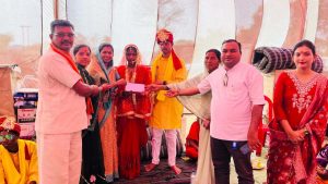 राजनांदगांव- कुमरदा में मुख्यमंत्री कन्या विवाह योजना के तहत सामूहिक विवाह का आयोजन किया गया. इस कार्यक्रम में राजनांदगांव जिला पंचायत अध्यक्ष गीता घासी साहू मुख्य अतिथि के रूप में शामिल हुई. इस आयोजन में रस्मों रिवाजों के साथ सात जोड़ों का विवाह कराया गया. जिला पंचायत अध्यक्ष गीता घासी साहू ने उपहार भेंट करते हुए सभी नव युगल जोड़ी को जीवन पथ पर आगे बढ़ाने की कामना करते हुए बधाई दी.