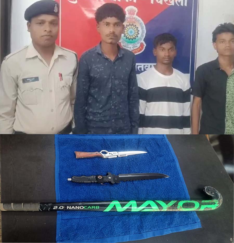 मामले को गंभीरता से लेते चौकी चिखली पुलिस एवं सायबर सेल की टीम गठित कर आरोपियों की पता साजी दबिश दिया गया घटना के बाद फरार आरोपियों के स्टेशनपारा में छिपे होने की विश्वस्त मुखबीर की सूचना पर स्टेशनपारा 16 खोली क्षेत्र में दबिश दी गयी, घेराबंदी कर 03 आरोपियों को पकडा गया. आरोपियो से पुछताछ करने पर अमित यादव, हर्ष बघेल,रोहित मंडावी के साथ घटना को विन्नु तलकई एवं अन्य के साथ मिलकर करना बताये. प्रकरण के अन्य फरार आरोपियों की पतासाजी की जा रही है. पुलिस ने घटना में प्रयुक्त हथियार धारदार चाकू, हॉकी स्टीक को जप्त किया गया. आरोपियों को विधिवत गिरफतार कर माननीय न्यायालय पेश किय गया.