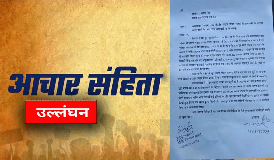 ग्राम पंचायत में सरपंच का पद अत्यंत महत्वपूर्ण पद है. सरपंच का दायित्व है कि शासन द्वारा समय-समय पर जारी प्रावधानों के अनुरुप पंचायती राज अधिनियम के अधीन अपने कर्तव्यों का निर्वहन करें. पर कार्यवाहक सरपंच एवं उपसरपंच द्वारा आदर्श आचार संहिता के प्रावधानों का उल्लंघन करते पाया गया जो कि अपने कर्तव्यों एवं दायित्वों के प्रति घोर लापरवाही है. निर्वाचन आयोग के नियमों के प्रतिकुल किया जाने वाला कृत्य निंदनीय है. उक्त कृत्य के लिए दोषियों को तत्काल पद से बर्खास्त किया जाना न्योयाचित होगा.अतः आपसे निवेदन है कि उक्त विषय को गंभीरता से लेते हुए तत्काल कार्यवाही करने की मांग रखी है.