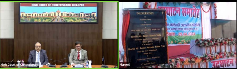 रायपुर- छत्तीसगढ़ उच्च न्यायालय के मुख्य न्यायाधिपति रमेश सिन्हा ने मंगलवार को मुंगेली जिले के तहसील लोरमी के ग्राम सारधा में न्यायालयीन कर्मचारियों हेतु नवनिर्मित निवास गृह का वीडियो कॉन्फ्रेसिंग के माध्यम से लोकार्पण किया.
