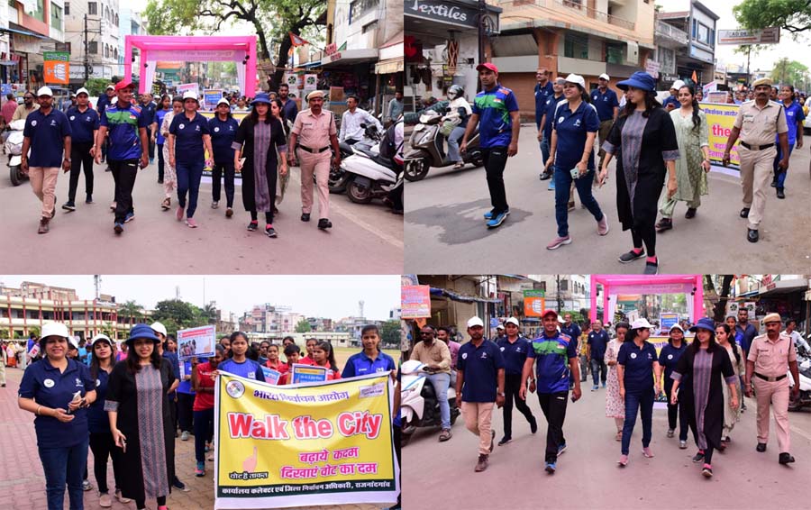 राजनांदगांव – आपका मतदान लोकतंत्र की जान…. इस संदेश के साथ स्वीप अंतर्गत वॉक द सिटी कार्यक्रम का आयोजन किया गया. लोकतंत्र के उत्सव को मनाने के लिए भारत माता की जय उद्घोष के साथ उमंग एवं उल्लास के साथ चौक चौराहों, गली-मोहल्लों से होते हुए युवाओं, खिलाडिय़ोंं, अधिकारी, कर्मचारी एवं नागरिकों का काफिला निकला. वॉक द सिटी रैली सर्वेश्वर दास हायर सेकेंडरी विद्यालय राजनांदगांव से गांधी सभा गृह, गुरूद्वारा चौक, मानव मंदिर चौक, आजाद चौक, गुड़ाखू लाइन, जुनी हटरी, जयस्तंभ चौक, महावीर चौक से होते हुए पुन: सर्वेश्वर दास हायर सेकेंडरी विद्यालय राजनांदगांव में समाप्त हुई. मतदाता जागरूकता के लिए कदम दर कदम कारवां बढ़ता चला गया और राहों में सभी के दिलों में मतदान करने का एक जज्बा जगाते चला गया.