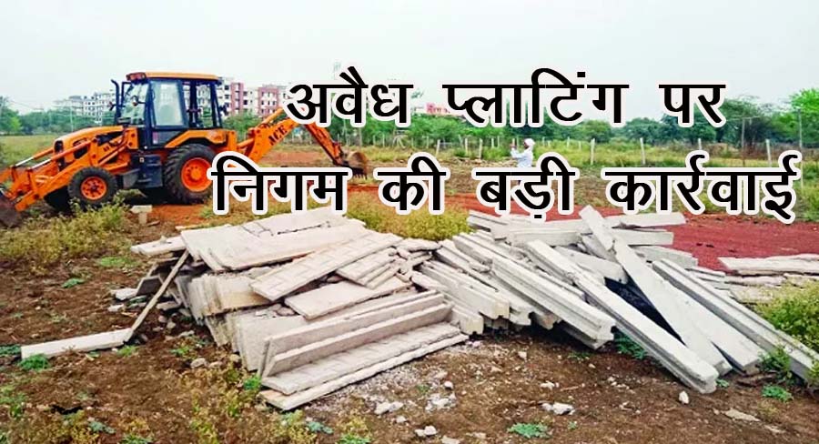 अवैध प्लाटिंग पर निगम ने की कार्रवाई, जेसीबी से उखाड़ कर मुरूम सड़क को किया ध्वस्त