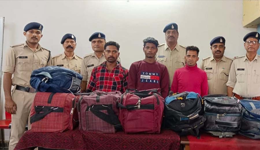 रायपुर- मादक पदार्थ गांजा की तस्करी के विरुद्ध जी.आर.पी पुलिस ने बड़ी कार्यवाही करते हुए 3 तस्करों को गिरफ्तार किया है. पुलिस अधीक्षक रेल रायपुर जे.आर. ठाकुर, के द्वारा आगामी लोकसभा चुनाव के मद्दे नजर ट्रेनो में अवैध रुप से नशीला पदार्थ परिवहन की रोकथाम हेतु अधिक से अधिक कार्यवाही करने के प्राप्त निर्देश पालन में जी.आर.पी रायपुर द्वारा पिछले कई दिनो से लगातार चेकिंग अभियान चलाई जा रही थी. मिली जानकारी के मुताबिक 10.अप्रैल को एन्टी काईम जीआरपी के साथ चेकिंग के दौरान प्लेटफार्म नंम्बर 02 बिलासपुर छोर ओव्हर ब्रिज के नीच रेल्वे स्टेशन रायपुर मे अवैध रुप से मादक पदार्थ गांजा उडिसा से ट्रेन नं 12146 पुरी एलटीटी सुपरफास्ट से लेकर आये 3 आरोपियों के कब्जे से तीन एयर बैग एवं तीन पिठवू बैग के अंदर रखे कुल वजनी 58 किलो मादक पदार्थ गांजा किमती 11,50,000/ रुपये तथा अपराध क, eh. 53/24 धारा 20 बी नार. एक्ट के आरोपी तरंग राणा पिता गजपति राणा उम्र 38 वर्ष निवासी ग्राम चौरा थाना सिनापाली जिला नुवापाडा (उडिसा) के कब्जे से दो पिठू बैग के रखे कुल वजन 21 किलो मादक पदार्थ गांजा किमती 4,20,000/ रुपये जप्त किया गया है.