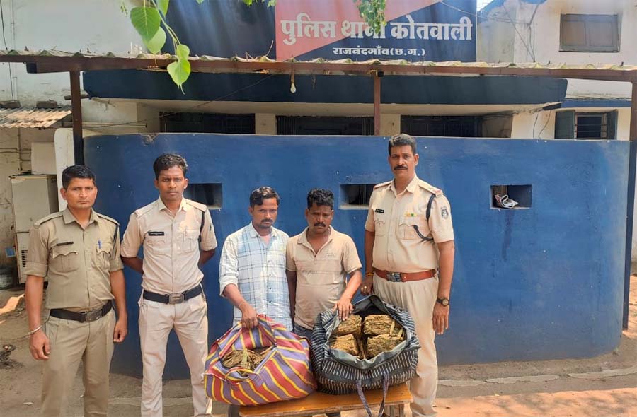 अभियान के तहत मुखबीर से सूचना मिला की राजनांदगांव बायपास के पास मेन रोड़ पर दो व्यक्ति गांजा रखकर बस का इंतजार कर रहे है, सूचना की तस्दीकी एवं आवश्यक कार्यवाही हेतु हमराह स्टाॅफ के मौका पहुंचकर घेराबंदी कर रेड कार्यवाही कर पकड़े. पूछताछ और तलाशी लेने पर एक कपड़ा का लाईनदार सफेद काला रंग का थैला के अंदर 25.090 कि.ग्रा. मादक पदार्थ गांजा एवं नगदी 950 रूपये तथा एक नायलोन का लाईनदार लाल पीला बैंगनी रंग का थैला के अंदर 15.610 कि.ग्रा. मादक पदार्थ गांजा एवं नगदी रकम 580 रूपये इस प्रकार कुल 40.700 कि.ग्रा. मादक पदार्थ गांजा एवं नगदी रकम 1530 रूपये जुमला किमती 3.21.530 रूपये मिला जिसे आरोपियों के कब्जे से जप्त कर कब्जा पुलिस लिया गया, आरोपियों का कृत्य नारकोटिक्स एक्ट के तहत अपराध सबुत पाये जाने से मौके पर गिरफ्तार कर हिरासत में लिया गया.