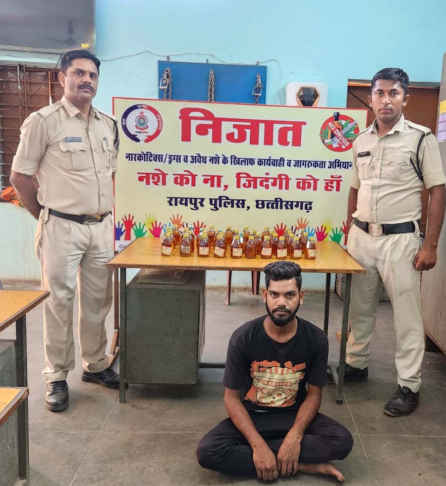 रायपुर- पुलिस ने नशे के कारोबार करने वाले को युवक को 35 पौवा देशी शराब के साथ रंगेहाथ गिरफ्तार किया है. वरिष्ठ पुलिस अधीक्षक संतोष कुमार सिंह द्वारा नशे के विरूद्ध निजात अभियान के तहत रायपुर पुलिस के समस्त पुलिस राजपत्रित अधिकारियों थाना प्रभारियों को नशे का काला कारोबार करने वाले कारोबारियों की पतासाजी कर कार्यवाही करने एवं इस पर प्रभारी रूप से अंकुश लगाने आवश्यक दिशा निर्देश दिये गये है. इसी तारतम्य में थाना DD नगर पुलिस को सूचना प्राप्त हुई की थाना – DD नगर क्षेत्रांतर्गत चंगोराभाटा एक व्यक्ति नीला कलर के बैग में देशी मसाला मदिरा रखा है तथा बिक्री करने की फिराक में है. जिस पर थाना DD नगर द्वारा सूचना की तस्दीक कर आरोपी को अवैध देशी मदिरा के साथ रंगे हाथ पकड़ा गया. तथा आरोपी के विरूद्ध थाना DD नगर मे अप.क्र. – 197/24 धारा – 34(2) आब.एक्ट. मे अपराध पंजीबद्ध कर रिमांड पर जेल भेजा गया.