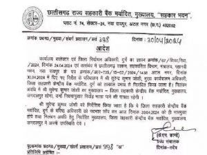 दरअसल जिला निर्वाचन अधिकारी ऋचा प्रकाश चौधरी से शिकायत की गई थी. जिला सहकारी बैंक दुर्ग के सीईओ सुरेंद्र जोशी ने कांग्रेस पार्टी के प्रत्याशी को जीत दिलाने के लिए कार्य करने का संकल्प लिया है. जिला निर्वाचन अधिकारी ने इस मामले में जांच के लिए तीन सदस्यीय जिला स्तरीय जांच समिति गठित की थी.