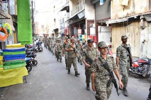 दुर्ग- लोकसभा निवार्चन मतदान तिथि 7 मई को दृष्टिगत रखते हुये जिले में शांतिपूर्वक मतदान सम्पन्न कराये जाने, लोगों को बिना किसी भय के मतदान करने हेतु जागरूक करने, आदतन अपराधियों, गुण्डे बदमाशों पर नकेल कसने के उद्देश्य से जिला दण्डाधिकारी, जिला निर्वाचन अधिकारी ऋचा प्रकाश चौधरी, पुलिस अधीक्षक जितेन्द्र शुक्ला, के मार्गदर्शन में मोहन नगर, सुपेला, वैशाली नगर, छावनी, एवं खुर्सीपार थाना के महत्वपूर्ण स्थलों, रेल्वे स्टेशन पावर हाउस आदि क्षेत्रों में पुलिस, प्रशासनिक, पैरा मिलेट्री फोर्स के अधिकारियों एवं जिला पुलिस बल, पैरा मिलेट्टी फोर्स के सैड़कों जवानों के साथ फ्लैग मार्च किया गया. दुर्ग में पुलिस लाईन दुर्ग से फ्लेग मार्च प्रारंभ किया गया जो पटेल चौक, सदर मार्केट, गवली पारा, चण्डी मंदिर, होटल मान, तकियापारा, श्री शिवम, अग्रसेन चौक, ग्रीन चौक, राजेन्द्र पार्क चौक, मालवीय नगर चौक, उतई रोड (गांधी प्रतिमा), पुलिस लाईन में जाकर समाप्त हुयी.
