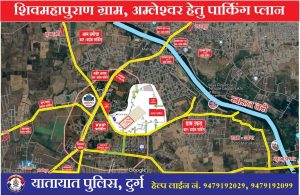 यातायात पुलिस दुर्ग द्वारा श्रद्धालुओं के सुगमता व सुरक्षित यातायात व्यवस्था को ध्यान में रखते हुए दुर्ग, भिलाई,रायपुर शहर की ओर से कथा स्थल तक आने-जाने के लिए निम्नानुसार मार्ग,पार्किंग एवं डायवर्शन प्लान तैयार निर्धारित किया गया है.
