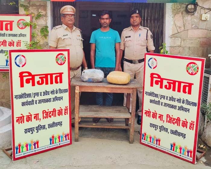 रायपुर- गंज थाना क्षेत्रांतर्गत रेलवे स्टेशन में पुलिस ने सोमवार को एक अंतर्राज्यीय गांजा तस्कर को गिरफ्तार किया है. आरोपी मूलतः जिला जौनपुर (उत्तर-प्रदेश) का रहने वाला है. वरिष्ठ पुलिस अधीक्षक संतोष कुमार सिंह के दिशा निर्देश पर रायपुर पुलिस द्वारा निजात अभियान के तहत नशे के विरूद्ध विशेष अभियान चलाया जा रहा है. नशे की सामाग्री बिक्री करने वालों एवं सप्लाई करने वालों पर कठोर कार्यवाही करने निर्देशित किया गया है.
