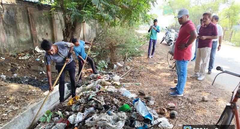राजनांदगांव – नगर निगम के स्वास्थ्य अमला द्वारा बारिश के पूर्व शहर के सभी बड़े नाली नालो की सफाई कार्य किया जा रहा है. जिसके तहत चरणबद्ध शहर के प्रमुख नाली-नालो की सफाई मेनुवल एवं जे.सी.बी. के माध्यम से कराई जा रही है. निगम आयुक्त अभिषेक गुप्ता ने मंगलवार को आर.के.नगर, पुलिस अधीक्षक निवास के पीछे के नाले की सफाई का निरीक्षण किया और निगम सीमाक्षेत्र के सभी नालो व नालियों की मानसून पूर्व अच्छी तरह से सफाई करवाने स्वास्थ्य अधिकारी दीपक अग्रवाल व वरिष्ठ स्वच्छता निरीक्षक राजेश मिश्रा को निर्देश दिये. निरीक्षण के दौरान उन्होंने जी.ई.रोड मंे मनोकामना भवन के पास फैलाकर फल दुकान लगाने तथा कचरा जलाने पर नराजगी व्यक्त करते हुये फल वाले को दुकान हटाने कहा तथा जुर्माना लगाने के निर्देशित किये.