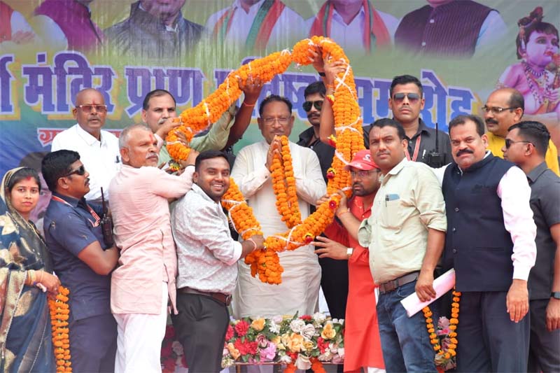 रायपुर- मुख्यमंत्री विष्णु देव साय आज मुंगेली जिले के ग्राम फरहदा में भक्तमाता कर्मा मंदिर प्राण प्रतिष्ठा समारोह में शामिल हुए. इस अवसर पर उन्होंने क्षेत्र के विकास के लिए अनेक महत्वपूर्ण घोषणाएं की-