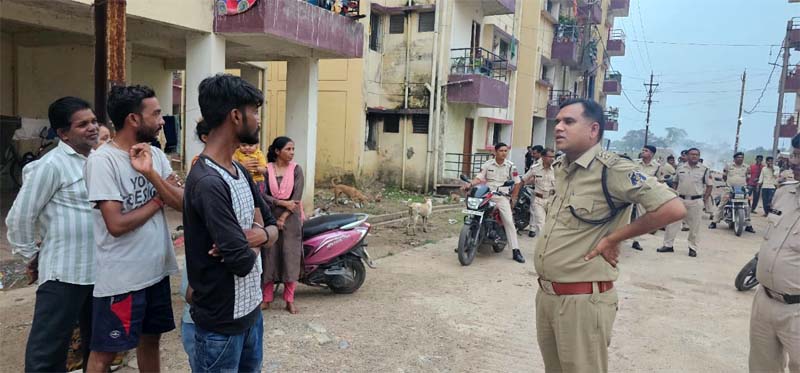 राजनांदगांव- अपराधो पर अंकुश लगाने के लिये रविवार को विजुअल पुलिसिंग के तहत् कोतवाली पुलिस ने निकाला फ्लैग मार्च निकाला गया. पुलिस अधीक्षक मोहित गर्ग के निर्देशन में अतिरिक्त पुलिस अधीक्षक (ऑप्स) मुकेश ठाकुर एवं अतिरिक्त पुलिस अधीक्षक राहुल देव शर्मा के मार्गदर्शन में नगर पुलिस अधीक्षक पुष्पेन्द्र नायक के नेतृत्व में थाना प्रभारी कोतवाली एमन साहू द्वारा कोतवाली एवं रक्षित केन्द्र के बल के साथ मोटरसायकल से फ्लैग मार्च निकाला गया.