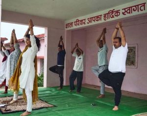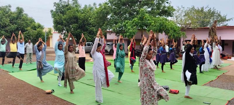 शाला की शिक्षिका शिला चंद्रा व डॉ सरोज साहू ने योग का महत्व बताते हुए भारत सरकार के प्रोटोकॉल के अनुसार प्रार्थना के बाद शिथलीकरण अभ्यास में ग्रीवा संचालन, स्कंध संचालन, कटि संचालन, घुटना संचालन, योगासन में ताड़ासन, बृक्षासन, पादहस्तासन, अर्धसक्रासन, त्रिकोण आसन, भद्रासन, वज्रासन, उष्ट्र आसन, शशांक आसन, वक्र आसान आदि व प्राणायाम में कपालभाति, अनुलोम विलोम, शीतली, भ्रामरी, ध्यान आदि का अभ्यास कराया. साथ ही सभी को अंकुरित अनाज वितरित किया गया.