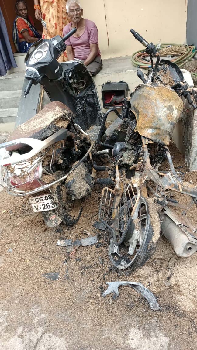 राजानांदगांव- घर के बाहर खड़ी दो मोटर सायकल को आग के हवाले करने वाले आरोपी को पुलिस ने गिरफ्तार कर लिया है. प्राथी शंभूलाल साहू निवासी संजय नगर लखोली ने ने 22 जून को थाना में रिपोर्ट दर्ज कराया कि दिनांक 21 जून 24 कोे भांजा पवन साहू एवं जागेश्वर साहू द्वारा अपनी मोटर सायकल क्रमांक सी.जी. 08 व्ही 2637 एवं मोटर सायकल क्रमांक सी.जी. 07 ए एम 8662 कीमती करीबन 40000 रूपये को खड़ी कर अपने काम से चले गये थे. कि दिनांक 21.06.24 के रात्रि 11 बजे किसी अज्ञात व्यक्ति द्वारा दोनों वाहनो मे आग लगाकर क्षतिग्रस्त कर दिया है. कि रिपोर्ट पर अज्ञात आरोपी के खिलाफ अप.क्र. 368/24 धारा 435 भादवि. पंजीबद्ध कर विवेचना मे लिया गया.