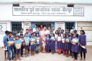 रायपुर- शाला प्रवेश उत्सव के प्रथम दिवस पर महिला एवं बाल विकास मंत्री लक्ष्मी राजवाड़े ने अपनी उपस्थिति दर्ज कराई. उन्होंने सूरजपुर जिले के अपने गृह ग्राम बीरपुर के शासकीय पूर्व माध्यमिक शाला में बच्चों के साथ शाला प्रवेश उत्सव मनाया. जहां उन्होंने स्कूल के बच्चों का तिलक लगाकर और उन्हें मिठाई खिलायी और उनका हाथ पकड़कर उनकी कक्षा में प्रवेश दिलायी. उन्होंने बच्चों को पाठ्य पुस्तकों के साथ-साथ शाला गणवेश का वितरण भी की. श्रीमती राजवाड़े ने नव प्रवेशी विद्यार्थियों को बधाई एवं शुभकामनाएं देते हुए उनके उज्ज्वल भविष्य की कामना की.