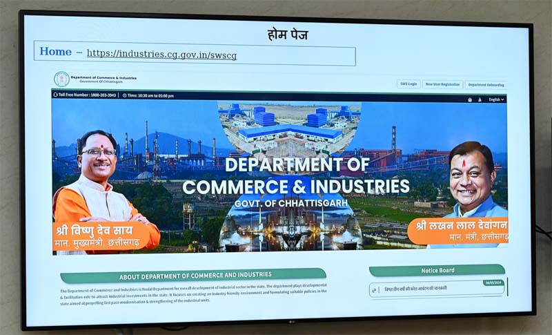 मुख्यमंत्री साय ने कहा कि प्रदेश में संसाधनों के विपुल भंडार है और औद्योगिक विकास के भी असीम अवसर उपलब्ध हैं. उद्योग विभाग की इस नई व्यवस्था से सभी सुविधाएं एक क्लिक पर उपलब्ध होगी. उद्योगों की स्थापना की प्रक्रिया आसान होने से निवेश में उनकी रुचि बढ़ेगी और युवाओं को रोजगार के अवसर भी मिलेंगे. व्यवसायियों को आवश्यक विभागीय अनुमति-सहमति और क्लीयरेंस के लिए भटकना नहीं पड़ेगा और ना ही अलग-अलग विभागों में आवेदन करने की आवश्यकता होगी.
