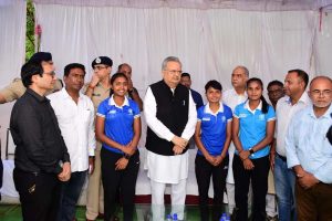 विधानसभा अध्यक्ष डॉ. रमन सिंह से अंतर्राष्ट्रीय हॉकी खिलाड़ी अनिशा साहू एवं भूमिका साहू ने भेंट की. अनिशा साहू ने नीदरलैण्ड में और भूमिका साहू ने जर्मनी में भारतीय जूनियर महिला हॉकी टीम के सदस्य के रूप में भारत का प्रतिनिधित्व किया है. इस दौरान विभिन्न खेलों में हिस्सा लेने वाले एवं प्रशिक्षण प्राप्त करने वाले खिलाडिय़ों ने भी विधानसभा अध्यक्ष से भेंट की. रक्षित केन्द्र राजनांदगांव द्वारा तीरंदाजी में जिले के खिलाडिय़ों को प्रशिक्षित किया जा रहा है. तीरंदाजी में प्रशिक्षण प्राप्त करने वाले 46 खिलाड़ी एवं उनके कोच भी विधानसभा अध्यक्ष से भेंट कर अपने प्रशिक्षण के बारे में अवगत कराया.