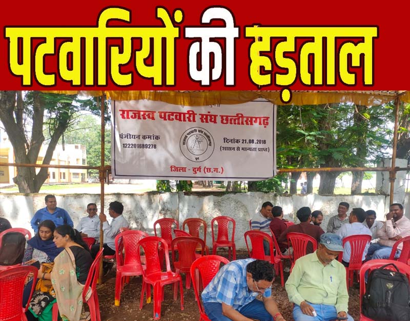 रायपुर- प्रदेश में पटवारियों की अनिश्चितकालीन हड़ताल सोमवार से शुरू हो गई है. राजस्व पटवारी संघ 32 सूत्री मांगों को लेकर प्रदेश के सभी पटवारी हड़ताल पर चले गए हैं. पटवारियों ने राजस्व पखवाड़ा का पूरी तरह बहिष्कार कर दिया है. वहीं, आज से सभी जिला मुख्यालयों धरना प्रदर्शन कर रहे हैं.