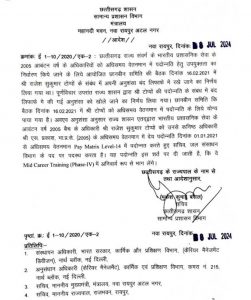 जारी आदेश में कहा गया है कि भारतीय प्रशासनिक सेवा के 2005 आबंटन वर्ष के अधिकारियों को अधिसमय वेतनमान में पदोन्नति के लिए उपयुक्तता का निर्धारण किये जाने के लिये आयोजित छानबीन समिति की बैठक 16.02.2021 में राजेश सुकुमार टोप्पों के संबंध में अपनी अनुशंसा बंद लिफाफे में रखे जाने का निर्णय लिया गया था. पूर्णविचार उपरांत राज्य शासन द्वारा टोप्पों की पदोन्नति के संबंध में बंद लिफाफे में की गई अनुशंसा को खोले जाने का निर्णय लिया गया. छानबीन समिति कि बैठक 16.02.2021 में टोप्पों को अधिसमय वेतनमान में पदोन्नति के लिये योग्य पाया गया है. अवएव अनुशंसा अनुसार राज्य शासन एतद्वारा भारतीय प्रशासनिक सेवा के आवंटन वर्ष 2005 बैच के अधिकारी टोप्पो को उनसे कनिष्ठ अधिकारी एस. प्रकाश, भा.प्र.से. (2005) के अधिसमय वेतनमान में देय पदोन्नति 01.01.2021 से अधिसमय वेतनमान Pay Matrix Level-14 में पदोन्नत करते हुए सचिव, जल संसाधन विभाग के पद पर पदस्थ करता है. यह पदोन्नति इस शर्त पर दी जाती है, कि वे Mid Career Training (Phase-IV) में अनिवार्य रूप से भाग लेंगे.