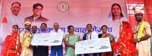 रायपुर- मुख्यमंत्री कन्या विवाह योजना का मुख्य उद्देश्य गरीब परिवारों को होने वाली आर्थिक परेशानियों को दूर करना, शादी के मौके पर फिजुलखर्ची को रोकना, सामूहिक विवाह के आयोजन से सामाजिक स्थिति में सुधार लाना है. गतदिवस को रायगढ़ जिले में मुख्यमंत्री कन्या विवाह योजना के तहत 45 जोड़े विवाह बंधन में बंधे. शासन की ओर से प्रत्येक जोड़े को कन्या के नाम से 35 हजार रूपये की राशि उनके बैंक खाते में अंतरित की गई. उपहार के रूप में बैग, श्रृंगार सामाग्री, कपड़े इत्यादि वर-वधु को दिया गया तथा जोड़ों को विवाह प्रमाण पत्र दिया गया.