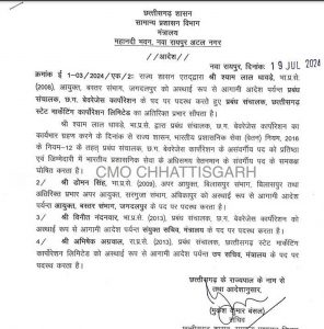 रायपुर- प्रदेश में बड़े प्रशासनिक फेरबदल में तीन आईपीएस और चार आईएएस अधिकारियों का तबादला आदेश जारी किया गया है. जारी लिस्ट में दो आईपीएस अफसर और एक राज्य पुलिस सेवा अधिकारी का नाम शामिल है.