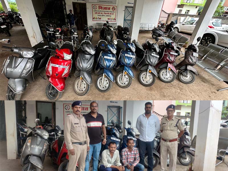 रायपुर- शहर के अलग-अलग थाना क्षेत्रों से एक दर्जन से ज्यादा दोपहिया वाहन चोरी करने वाले दो शातिर चोर को पुलिस ने गिरफ्तार कर लिया है. आरोपित ने रायपुर शहर के अलग-अलग थाना क्षेत्रों से 14 दोपहिया वाहन चोरी की है. प्रार्थिया निशा नत्थानी पति जयंत नत्थानी ने तेलीबांधा थाना तेलीबांधा रायपुर में रिपोर्ट दर्ज करायी कि दिनांक 04.07.2024 को आवेदिका अपने स्कूटी क्रमांक सीजी 04 एम.बी .2133 से अपने नत्थानी बुटिक महावीर नगर गई थी जहां किसी अज्ञात चोर द्वारा आवेदिका के उक्त स्कुटी को चोरी हो गई. रिपोर्ट पर थाना न्यू राजेन्द्र नगर रायपुर में अप. क्र.294/2024 धारा 303 (2)बीएनएस का अपराध पंजीबद्ध कर विवेचना में लिया गया.