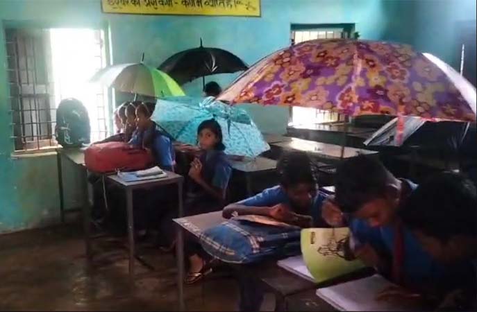 खण्ड शिक्षा अधिकारी ने अपने रिपोर्ट में बतलाया है कि पिछले तीन- चार दिनों में वनांचल में तेज बारिश होने छत का पानी का रिसाव ज्यादा होने के कारण मौसम सामान्य होने तक छुट्टी दी गई है ऐसी स्थिति में छत्ता लेकर पढ़ाई करते हुए स्कूली बच्चों की वीडियो प्रायोजित प्रदर्शित हो रही है. आज तक बच्चो कों कक्षा में छत्ता पकड़ाकर पढ़ाई नही कराई गई है.