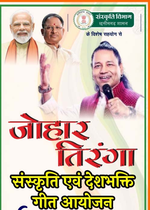 जोहार तिरंगा कार्यक्रम के भव्य आयोजन को लेकर तैयारियां शुरू कर दी गई है. यह आयोजन छत्तीसगढ़ संस्कृति विभाग के विशेष सहयोग से किया जा रहा है. ‘हर घर तिरंगा’ अभियान के तहत आयोजित यह कार्यक्रम न केवल देशभक्ति की भावना को प्रोत्साहित करेगा बल्कि छत्तीसगढ़ की सांस्कृतिक धरोहर को भी उजागर करेगा.