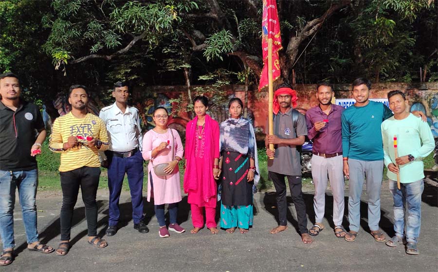 पदयात्रियो की सुरक्षा की दृष्टि से यातायात पुलिस दुर्ग के सहयोग से स्वयंसेवकों ने की सराहनीय पहल