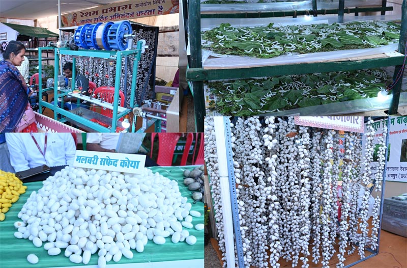 विभागीय स्टाल में आए किसानों और आमजनों ने ग्रामोद्योग विकास विभाग की योजनाओं के बारे में भी विस्तृत जानकारियां ली. गौरतलब है कि छत्तीसगढ़ कोसा उत्पादन एवं कोसा वस्त्र निर्माण के क्षेत्र में अग्रणी राज्य के रूप में प्रगति कर रहा है. मुख्यमंत्री विष्णु देव साय के नेतृत्व में वन आधारित ग्रामोद्योग को बढ़ावा देने के संकल्प को पूरा करते हुए छत्तीसगढ़ टसर उत्पादन के क्षेत्र में परम्परागत रूप से विशिष्ट स्थान रखता है. रेशम प्रभाग के योजनाओं के जरिए ग्रामीण अंचल में निवासरत जरूरतमंद परिवारों को रोजगार, स्व-रोजगार उपलब्ध हो रहे हैं.