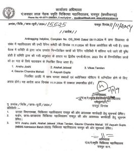 इस संबंध में चिकित्सा महाविद्यालय के कार्यालय अधिष्ठाता की ओर से पत्र जारी किया गया है.