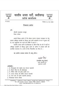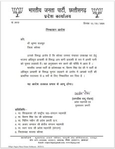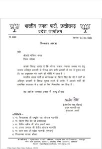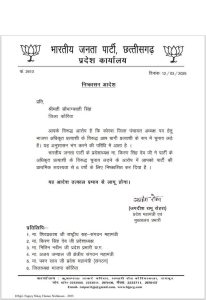 कोरबा जनपद पंचायत में अध्यक्ष और उपाध्यक्ष के चुनाव में पार्टी के अधिकृत प्रत्याशी के विरूद्ध बागी प्रत्याशी के रूप चुनाव लड़ने वाले 5 भाजपा नेताओं को पार्टी ने 6 साल के लिए निष्कासित कर दिया है जिसमें एक कोरिया जिला की सौभाग्यवती सिंह शामिल है. निष्कासित किए गए नेताओं में अरविंद भगत, कृष्णा राजपूत, चंद्रकांता राजपूत और मोनिका भगत शामिल हैं.