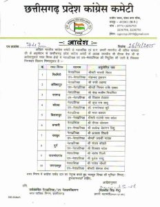 रायपुर- छत्तीसगढ़ में कांग्रेस ने नगर निगमों में संगठनात्मक फेरबदल करते हुए नेता प्रतिपक्ष और उप नेता प्रतिपक्ष की नई सूची जारी कर दी है. प्रदेश के 10 नगर निगमों में कांग्रेस पार्षदों के बीच नई जिम्मेदारियां तय की गई हैं.