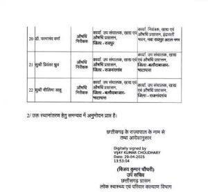 रायपुर- राज्य सरकार ने स्वास्थ्य विभाग में प्रशासनिक सर्जरी करते हुए तबादला आदेश जारी किया है. लोक स्वास्थ्य एवं परिवार कल्याण विभाग द्वारा जारी आदेश के अनुसार प्रदेश के अलग-अलग जिलों में पदस्थ 22 सहायक औषधि नियंत्रकों और औषधि निरीक्षकों का तबादला किया गया है.
