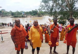 सावन का पहला सोमवार : सांकर दाहरा से कांवरिया कलश भरकर तपोभूमि पहुंचे, 20 किमी की यात्रा