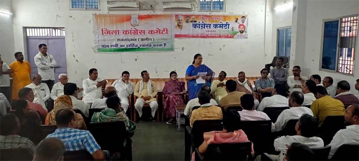बैठक की जानकारी देते हुए शहर कांग्रेस कमेटी के महामंत्री अमित चंद्रवंशी ने बताया कि अखिल भारतीय कांग्रेस कमेटी द्वारा उदयपुर में आयोजित संकल्प शिविर में पारित अध्यायदेश के तहत संगठन को जमीन स्तर पर मजबूती प्रदान करने ‘‘वर्ष 2025 सृजन संगठन‘‘ को मूल उद्देश्य बनाते हुए मंडल और सेक्टर समितियों का पुनर्गठन करना है. जिसके तहत 28 जुलाई सोमवार को सतनाम भवन में बैठक आयोजित कर कांग्रेसजनों में नई उर्जा का संचार करने व बूथों को मजबूती प्रदान करने पूर्व मंत्री व जिला प्रभारी अनीला भेड़िया उपस्थित रही. प्रदेश कांग्रेस अध्यक्ष दीपक बैज द्वारा राजनांदगांव जिले में 08 मंडल प्रभारी की नियुक्त की है. पूर्व मंत्री धनेश पाटिला, विधायकगण दलेश्वर साहू, भोलाराम साहू, हर्षिता स्वामी बघेल, विधायक प्रत्याशी गिरीश देवांगन, संभागीय प्रवक्ता कमलजीत सिंह पिन्टू, श्रीकिशन खंडेलवाल, पीसीसी महासचिव शाहिद खान ने कई अहम सुझाव बैठक में रखे.