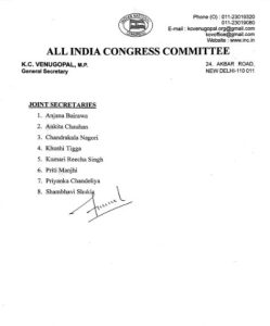 युवा कांग्रेस की नई राष्ट्रीय कार्यकारिणी घोषित