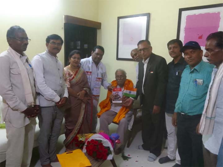 राजनांदगांव- साहित्य के क्षेत्र में देश के सबसे बड़ा सम्मान ज्ञानपीठ पुरस्कार से पुरस्कृत वरिष्ठ कवि, साहित्यकार विनोद कुमार शुक्ल का संस्कार धानी के कवि / साहित्यकारों ने उनके निवास स्थान जाकर उनका भाव-भीना सम्मान किया. इससे श्री शुक्ल अत्यधिक अभिभूत हुए.
