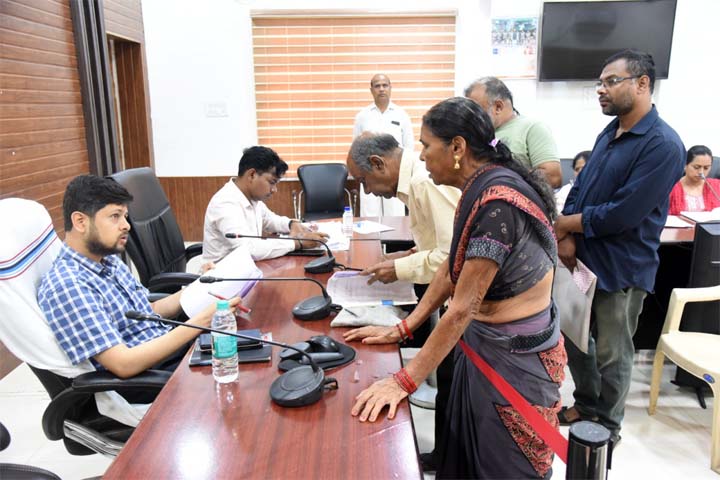 दुर्ग- जिला कार्यालय के सभाकक्ष में सोमवार को कलेक्टर अभिजीत सिंह ने जनदर्शन कार्यक्रम में पहुंचे जनसामान्य लोगों से मुलाकात कर उनकी समस्याएं सुनी. उन्होंने जनदर्शन में पहुंचे सभी लोगों की समस्याओं को गंभीरता से सुना और समुचित समाधान एवं निराकरण करने संबंधित विभागों को शीघ्र कार्यवाही कर आवश्यक पहल करने को कहा. जनदर्शन कार्यक्रम में डिप्टी कलेक्टर उत्तम ध्रुव भी उपस्थित थे. जनदर्शन में अवैध कब्जा, आवासीय पट्टा, प्रधानमंत्री आवास, भूमि सीमांकन कराने, आर्थिक सहायता राशि दिलाने सहित विभिन्न मांगों एवं समस्याओं से संबंधित 102 आवेदन प्राप्त हुए.