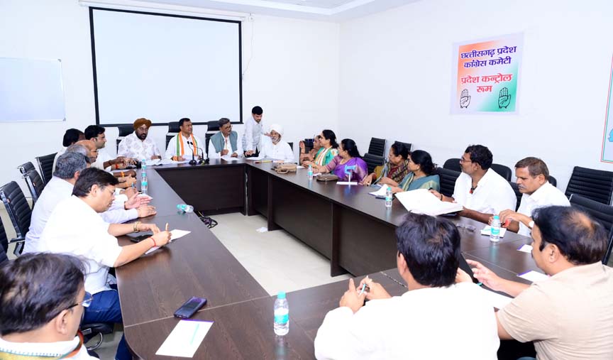 रायपुर- प्रदेश कांग्रेस की दो महत्वपूर्ण बैठकें प्रदेश कांग्रेस अध्यक्ष दीपक बैज एवं नेता प्रतिपक्ष डॉ. चरणदास महंत की उपस्थिति में बुधवार को संपन्न हुई. पहली बैठक जिला कांग्रेस अध्यक्षों तथा दूसरी बैठक प्रदेश कांग्रेस कार्यकारणी (उपाध्यक्ष, महामंत्री, कार्य. सदस्यगण) की हुई.